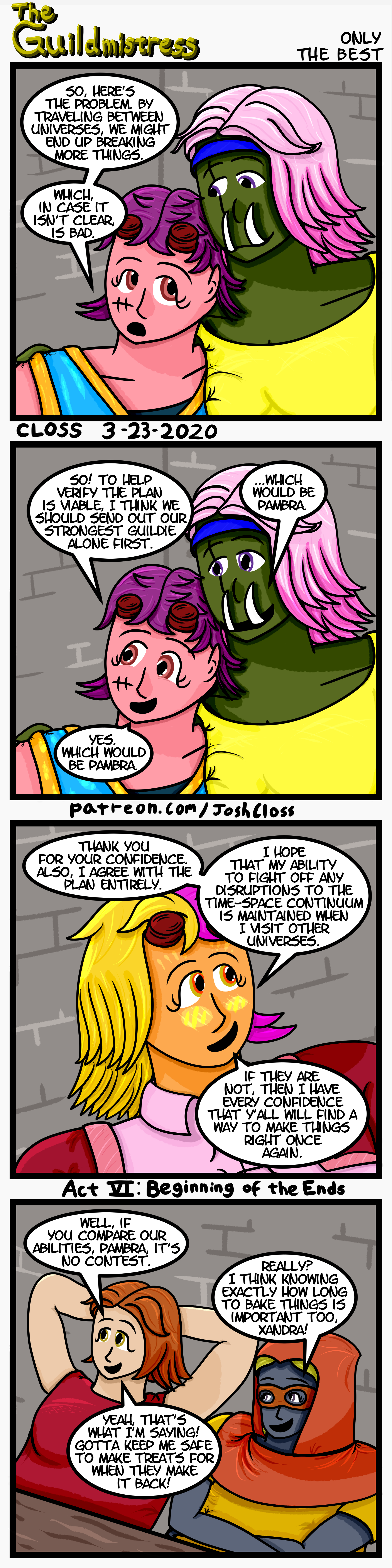 The Guildmistress: Act VI – Beginning of the Ends Next Act Share this: Click to share on X (Opens in new window) X Click to share on Facebook (Opens in new window) Facebook Like Loading...